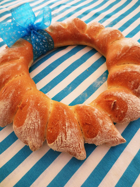 3.Из каждой части сформировать кольцо. Сначала в середине делаем дырку и затем растягивая на весу формируем кольцо. Посыпаем сверху мукой и накрываем полотенцем, оставляем на 30 минут.