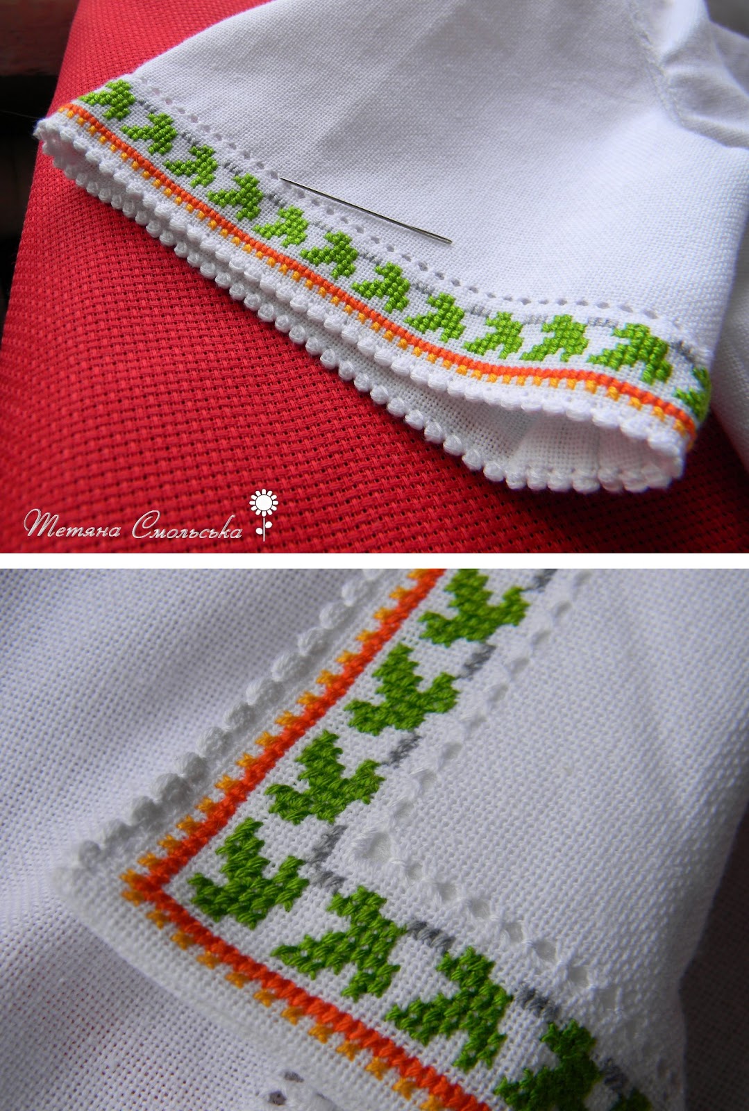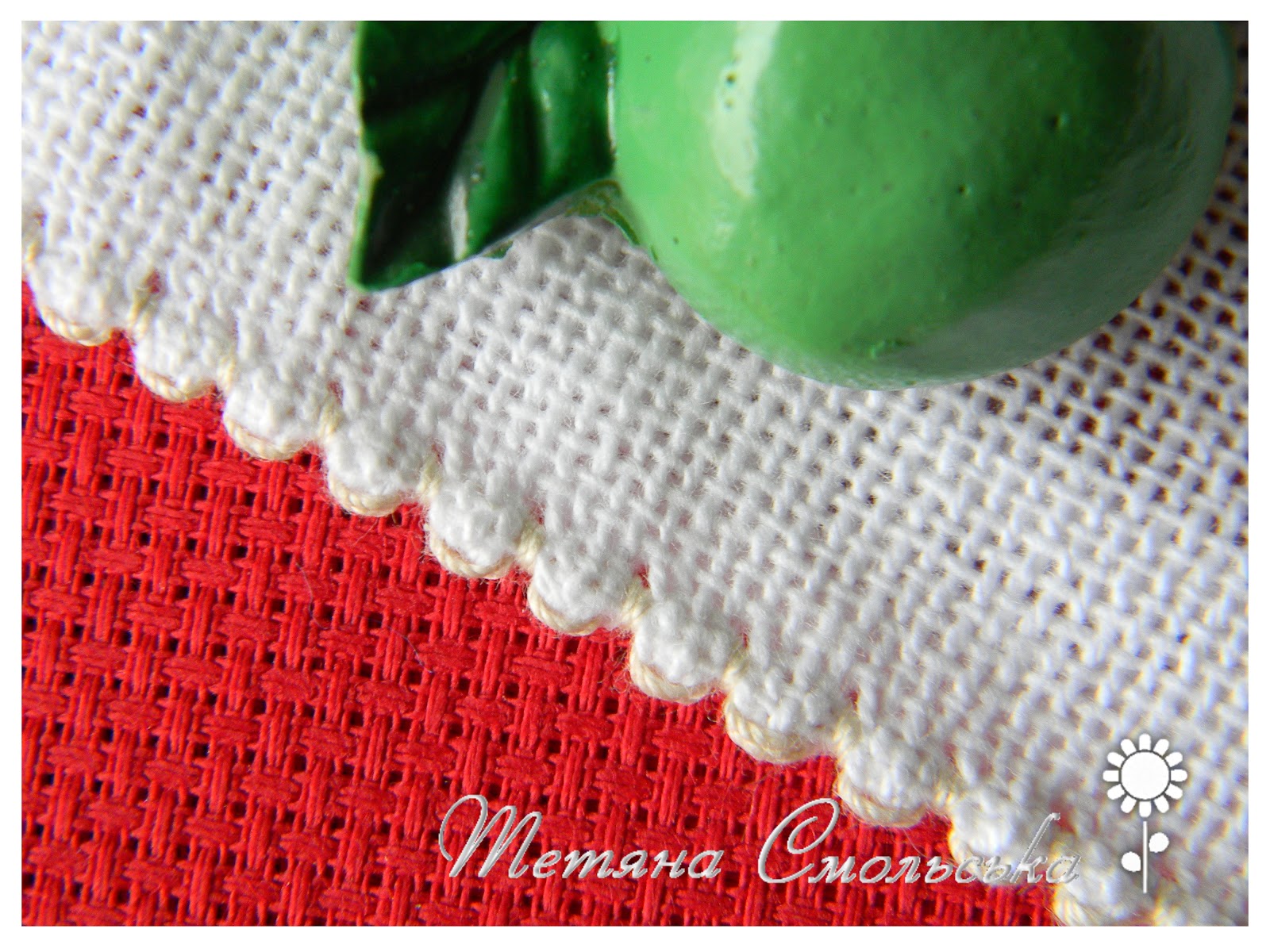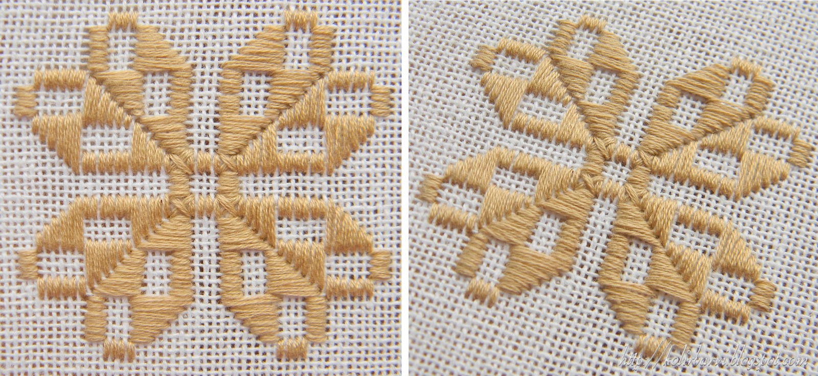 Я отшила образец для себя. Не сфотографировала, потому что не понравились масштабы, которые и применила, намельчила. Я делала три дорожки: 1,5см. - 3см. - 1,5 см. По ощущениям, размеры должны быть раза в два больше: 3-6-3. Потому что в моих размерах мережка теряет свою выразительность. Шьется просто. Три дорожки, между ними расстояние в несколько нитей (у меня было примерно 0,2см.). Первый шаг - прокладываю центральную ось во всех трех дорожках: в крайних дорожках собираю в снопик по три пучка нитей, в среднем - 5 пучков. Далее - на схеме № 1 - формируем столбики в снопиках (обвиваем пучок нитей, фиксируя узелком) зигзагообразно: верхние пучки, к центру, нижние пучки, к ыентру, верхние пучки и т.д. В обратную сторону - наоборот. Все ,крайние дорожки готовы. Переходим к центральной. Формируем пучки, аналогично тому ,как делали в крайних дорожках, только в три ряда узелков. Ну и напоследок вышиваем цветочки, обвивая бриды по схеме швом "восьмерка". Примерно так: