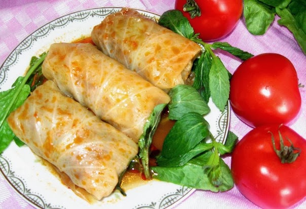 * Кочан можно предварительно отварить, целиком погрузив в кипящую подсоленную воду. Варить, пока листья не станут мягкими. Вынуть из воды капусту, дать стечь воде и вырезать кочерыжку (кочерыжку можно вырезать до варки капусты или после варки). Разобрать капусту на отдельные листья.