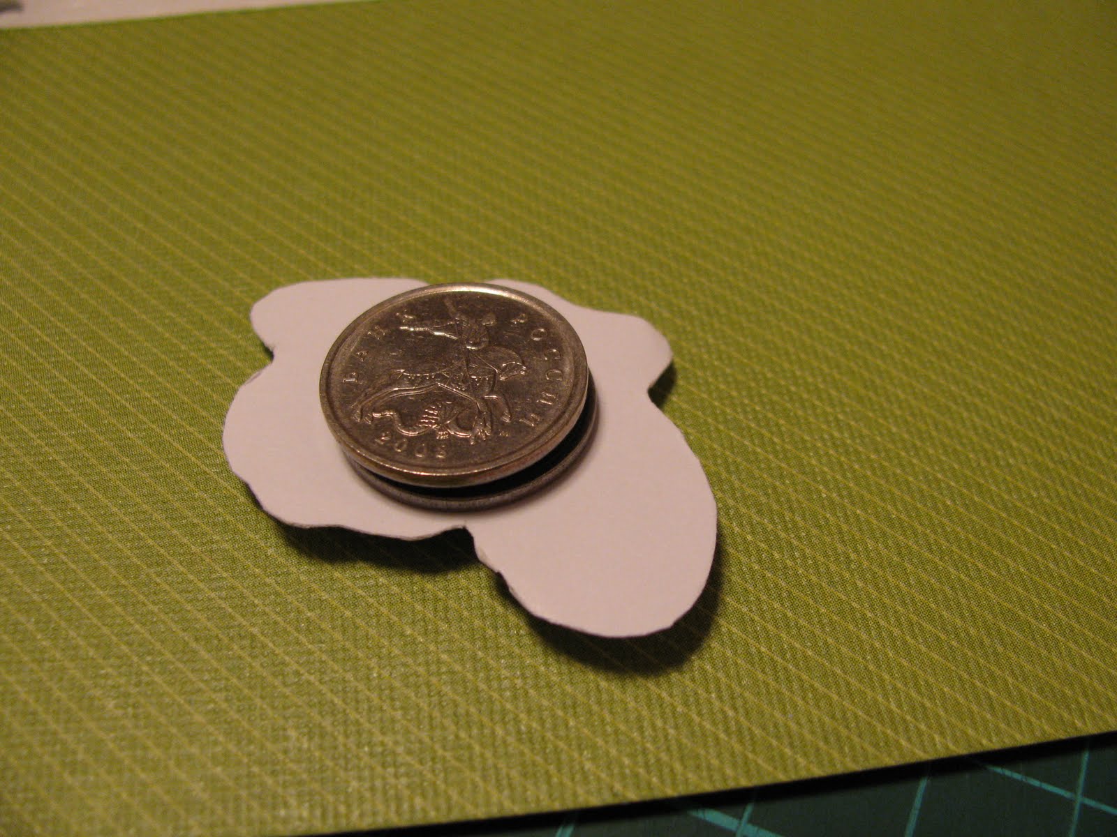 [показать] Монетки скрепляем двусторнним кружочком и на одну из них приклеиваем черепаху. [показать]