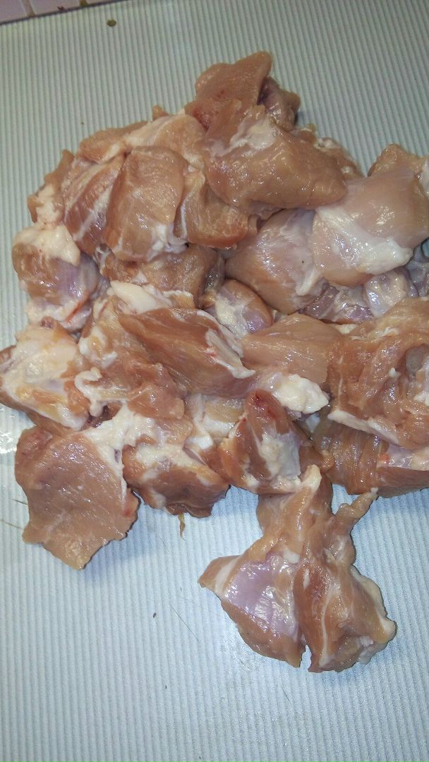 берем кусок мяса, и режем его на кусочки.