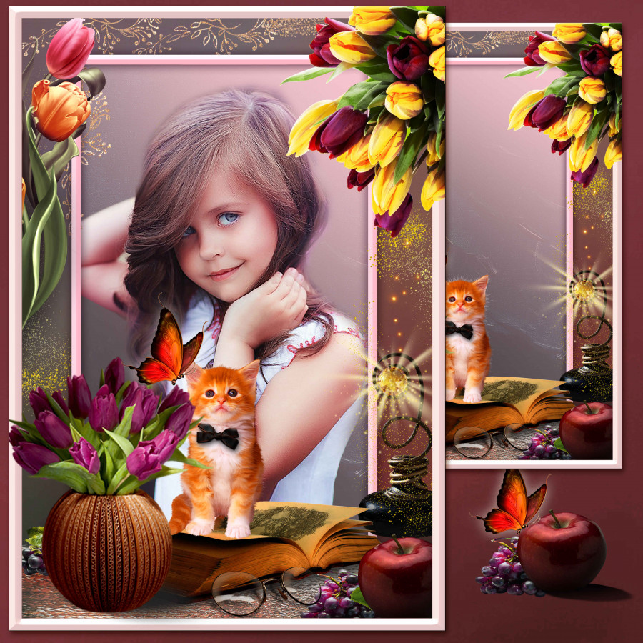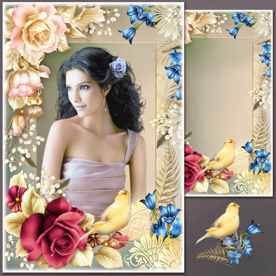 Цветочная рамка для фото с роскошными розами - Нежный пурпур
