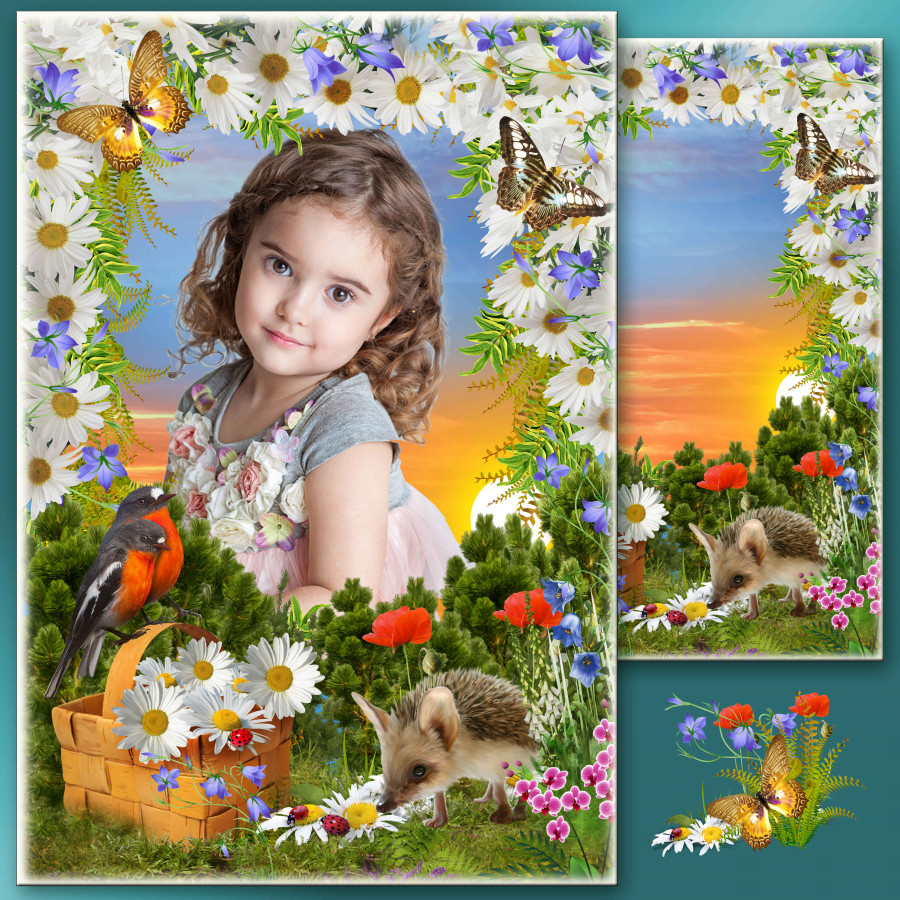 Рамка для фото с весенним пейзажем - Ромашковый закат