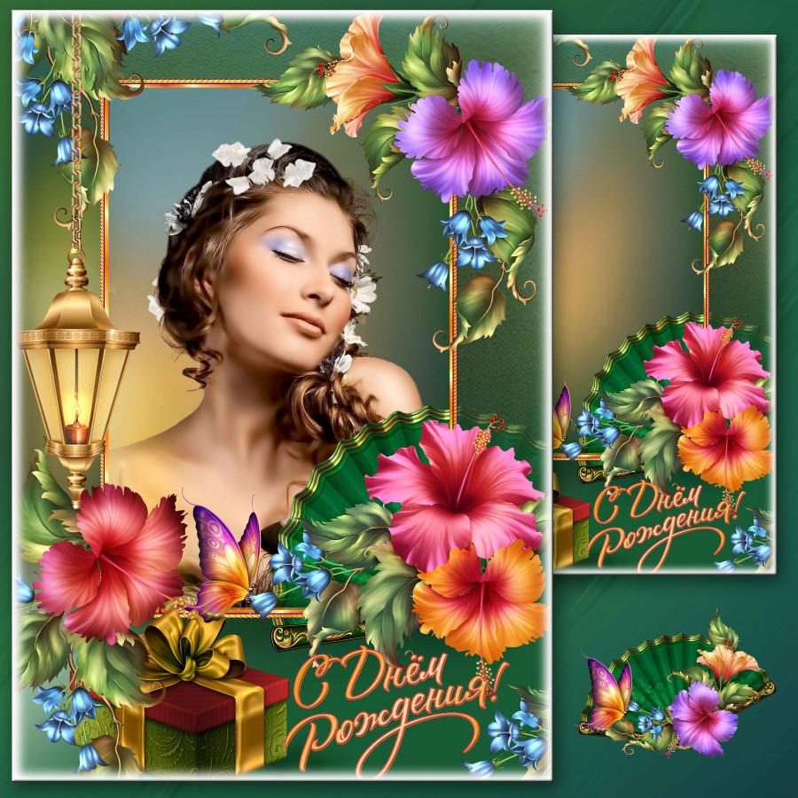 Поздравительная рамка для фото к Дню рождения - Яркие ирисы