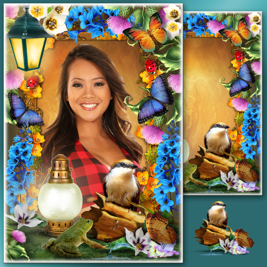 Цветочная рамка для фото с самоцветами - Царевна лягушка