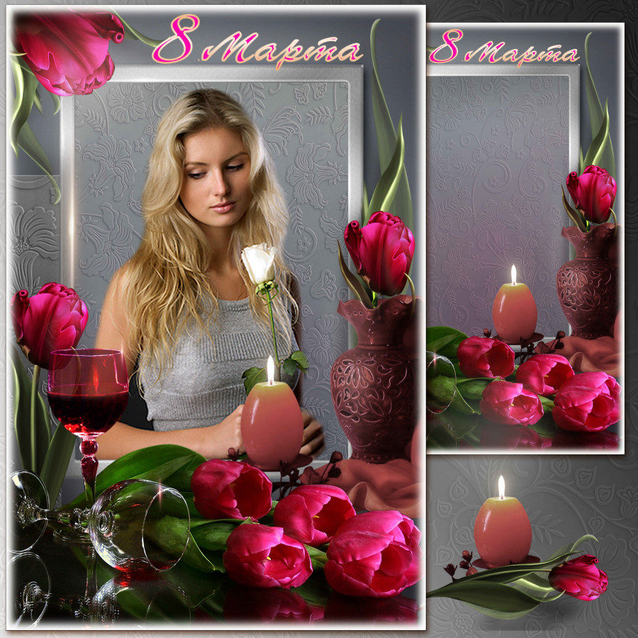 Праздничная рамка для фото - Среди весенних первых дней, 8 Марта всех дороже.