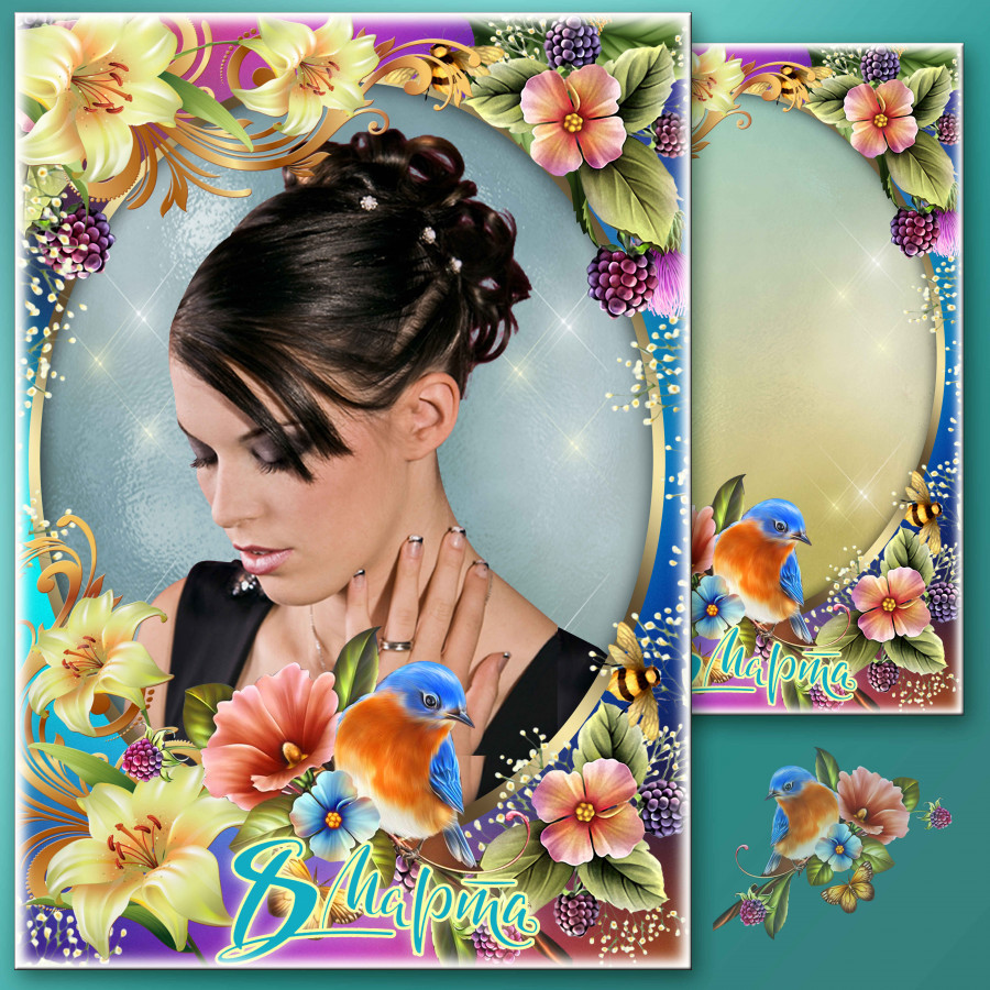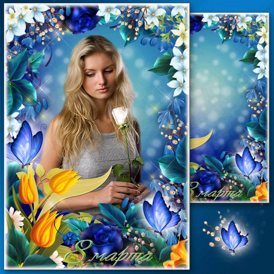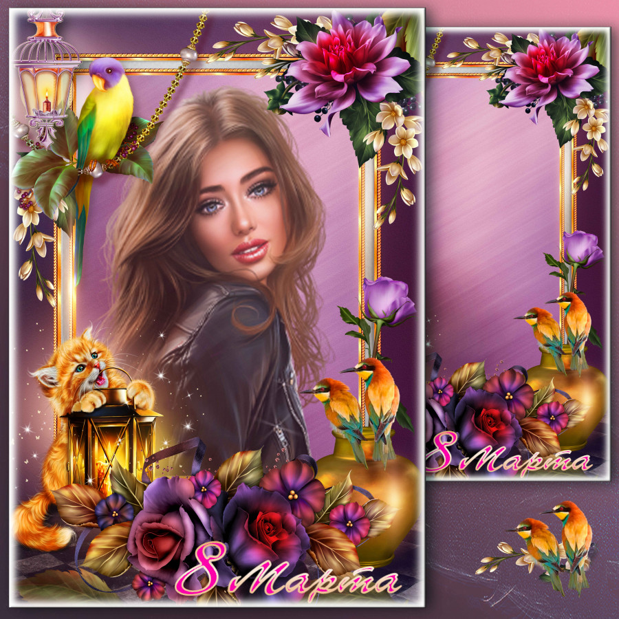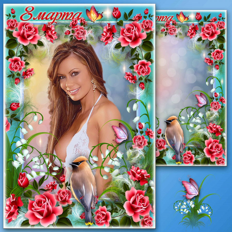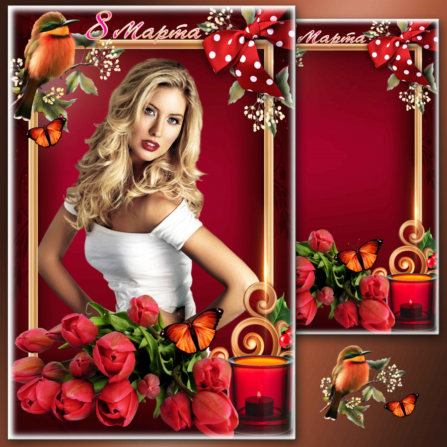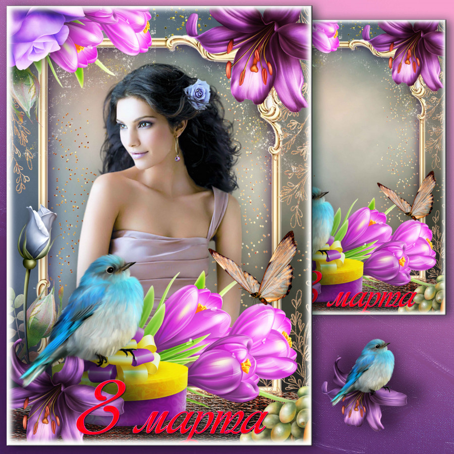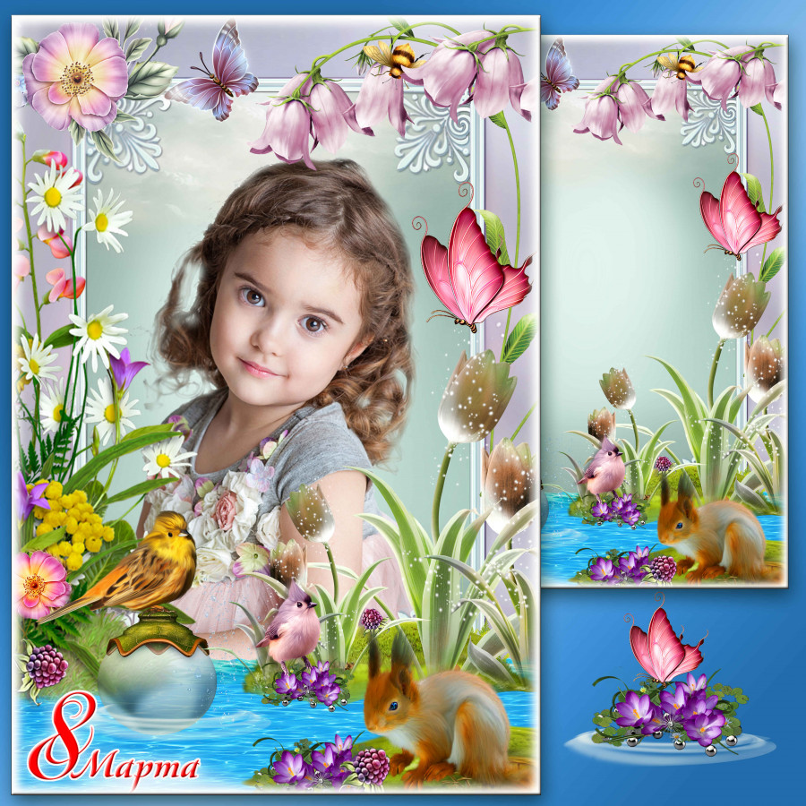 Праздничная рамка для фото к 8 Марта - Уж тает снег, бегут ручьи, засвищут скоро соловьи