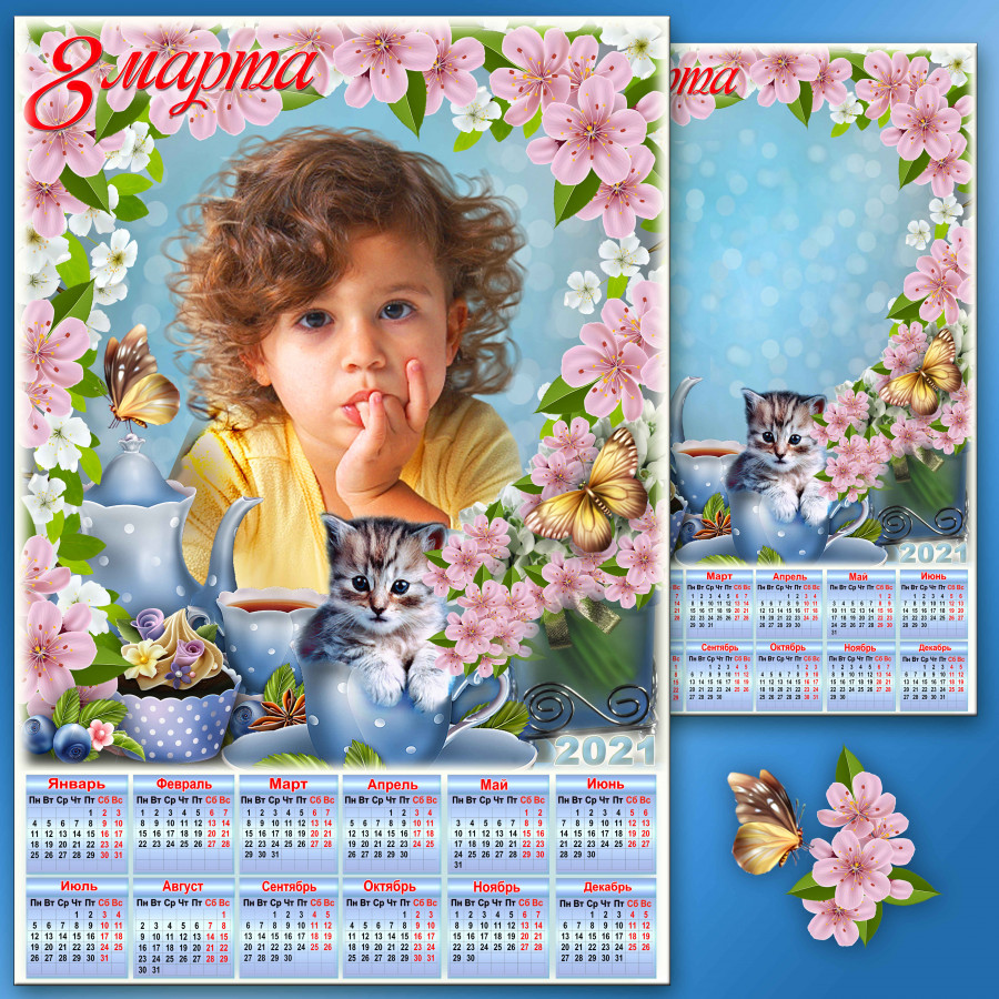Праздничный календарь на 2021 год с рамкой для фото к 8 Марта - Весенняя ночь