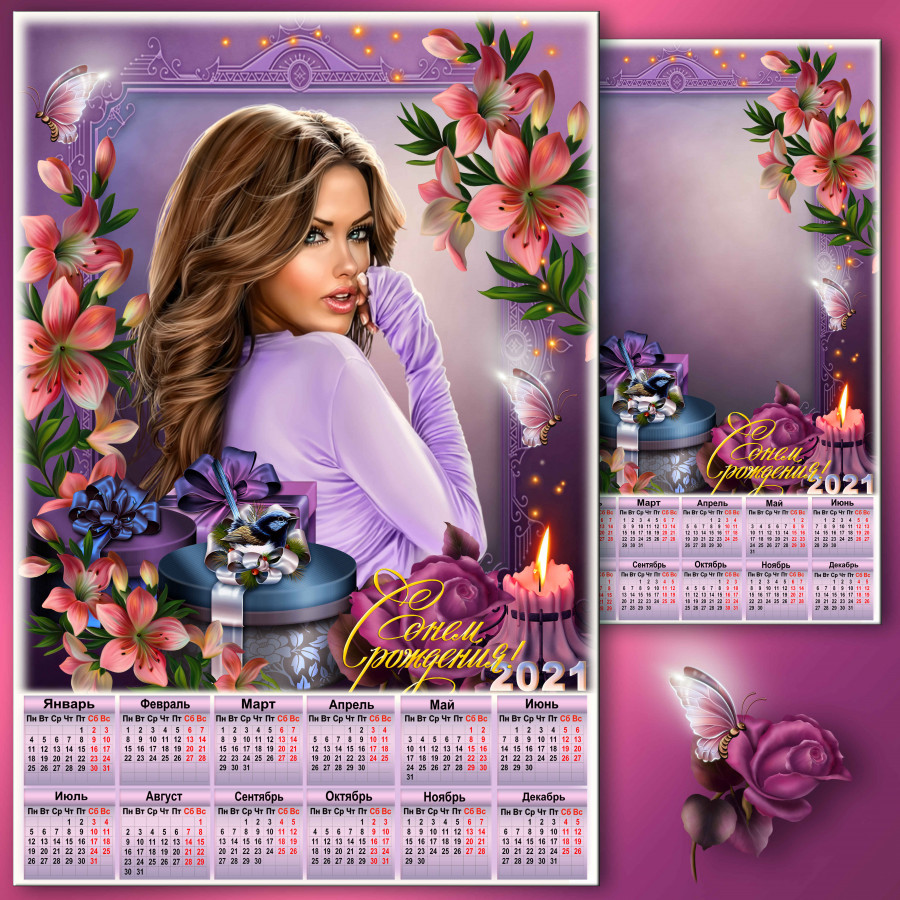 Календарь на день рождения с рамкой для фото - Для тебя улыбки и подарки, и слова наполнены теплом.