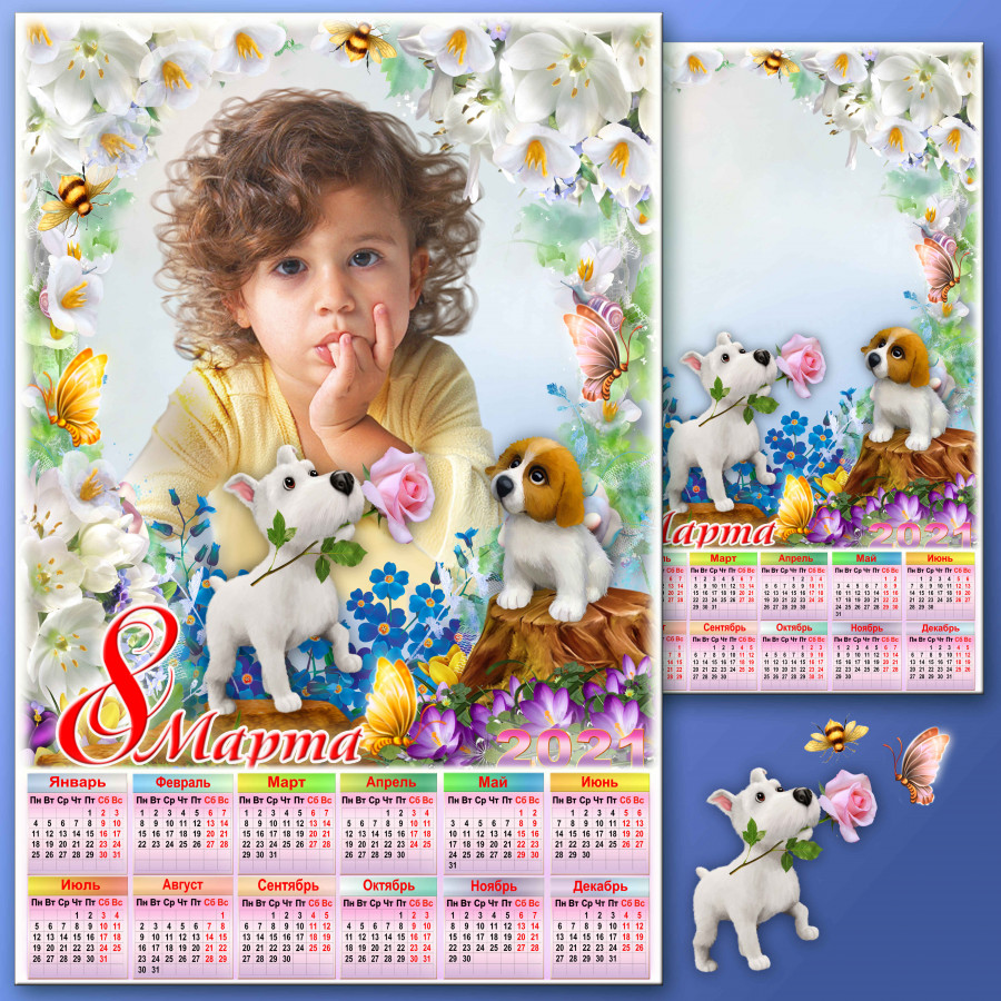 Праздничный календарь на 2021 год с рамкой для фото к 8 Марта - Нежные чувства
