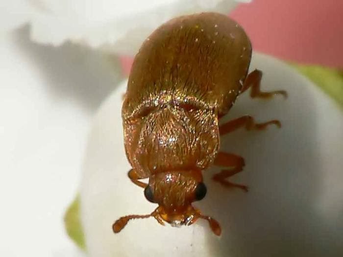 [320x240]Малинный жук - второй по значимости вредитель урожая малины после малинно-земляничного долгоносика. Кроме малины, повреждает ежевику. Это небольшой (до 4 мм) жук, серовато-черного цвета, покрытый ржавыми волосками, личинка грязно-желтого