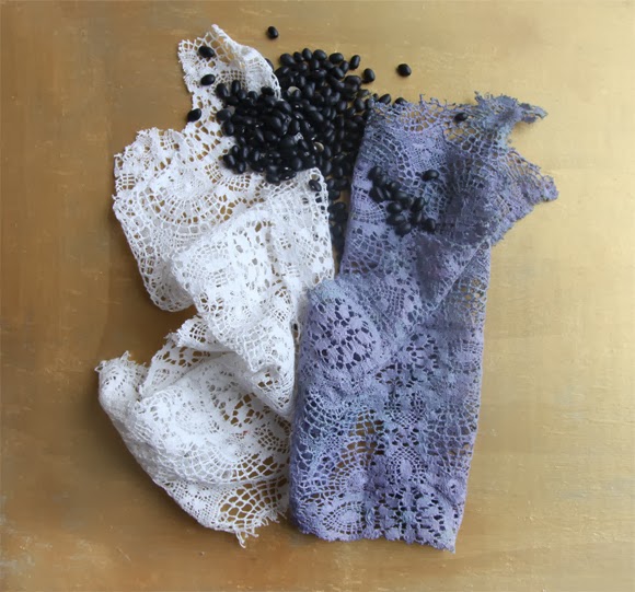 Заварила кипятком (2 варианта - 1,5 ч. ложки на 200 мл кипятка и 3 ч. ложки на 200 мл кипятка), хорошо перемешала, чтобы растворился. Положила кусочки ткани. Доставала сразу, через 1,3,6,10 и 20 минут (не забывала помешивать). Сушила, утюжила, а затем на листе все оформила.