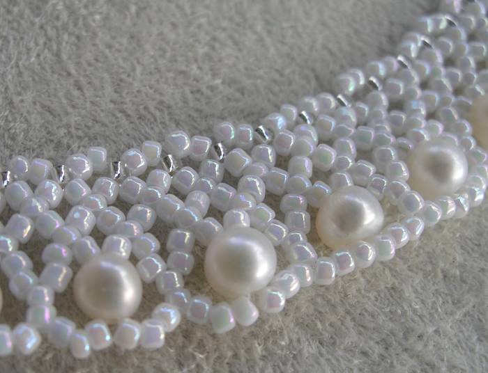 Колье "К юбилею", по схеме Ольги Котельниковой (ОльгаК на бисеринфо) -бусины пластиковые "под жемчуг", бисер тохо