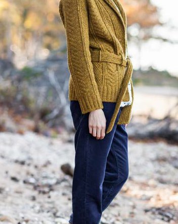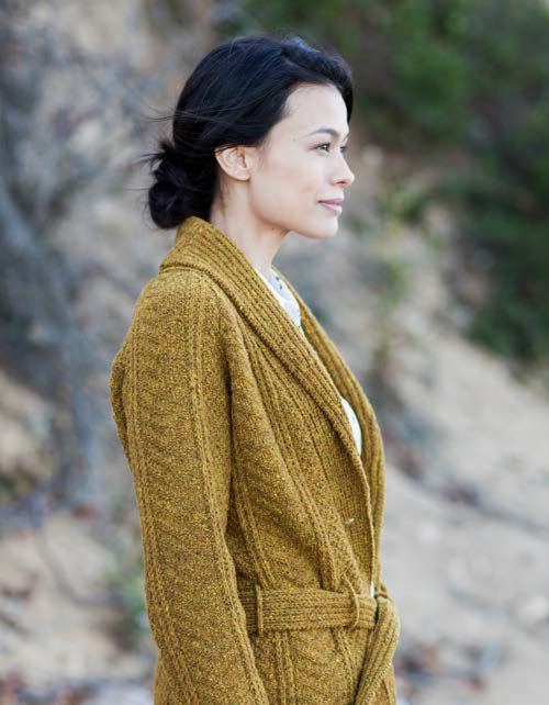Простой стильный жакет Dune от Ким Харгрейвз связан спицами чередованием текстурных полос.