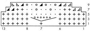 Раппорт состоит из тринадцати петель. Число петель в ряду должно делиться на тринадцать плюс две кромочные петли.