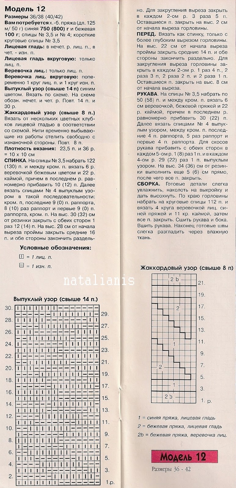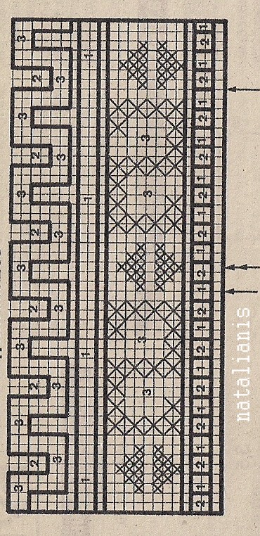 Изделие состоит из квадратов, связанных по схеме 1, треугольников по схеме 2 и полуквадратов по схеме 3, соединенных в процессе вязания последнего ряда.