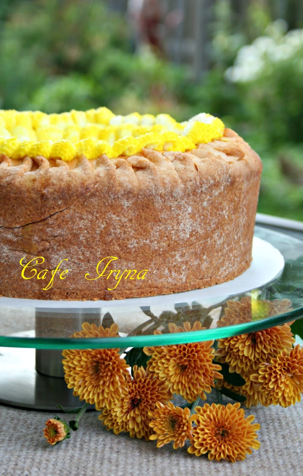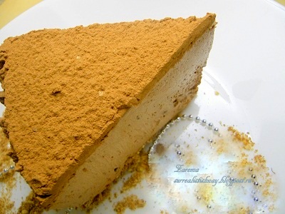 Это тортик, ммм... Пропитавшись кремом, светится янтарным слоем яблочек... Легкий, кисло-сладкий. Я обернула его шоколадной лентой хотя, он и без нее самодостаточен. Можно присыпать легким слоем кокосовой стружки...