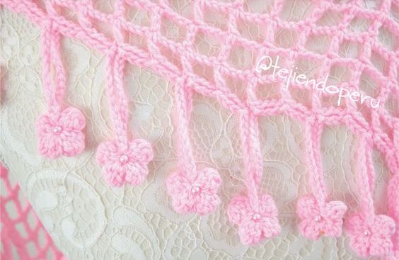 Слова автора: Хочу поделиться схемой каймы с вами. Очень классная, стильная кайма, связанная крючком. Я вязала ее для черного платья, которое необходимо было удлинить. Ну а вообще, вариантов использования вязаной каймы очень много. Фантазируйте!