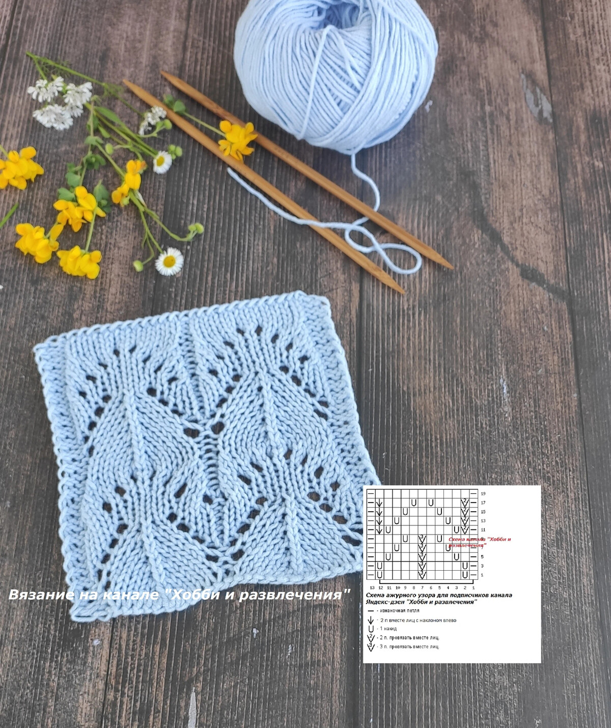 Как вязать спицами фантазийный узор:Число петель кратно 10 + 2 кром. п. Для образца набрать 12 п. и вязать согласно схеме, на которой приведены только лицевые ряды. В изнаночных рядах все петли и накиды вязать изнаночными. Раппорт узора = 10 п. в ширину. Между кромочными постоянно повторять раппорт. |