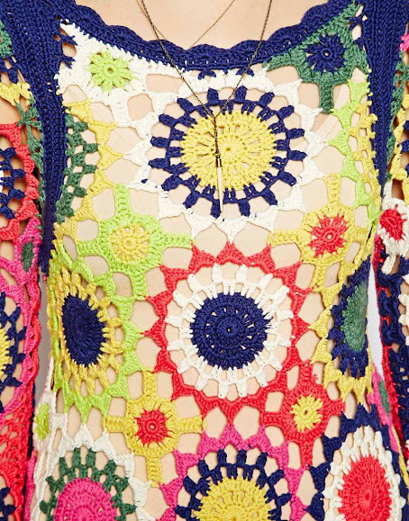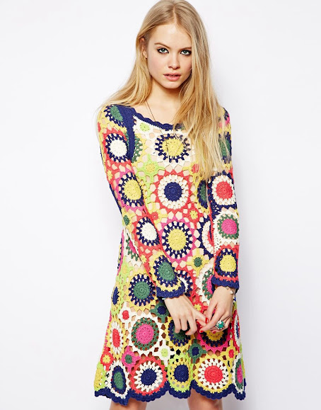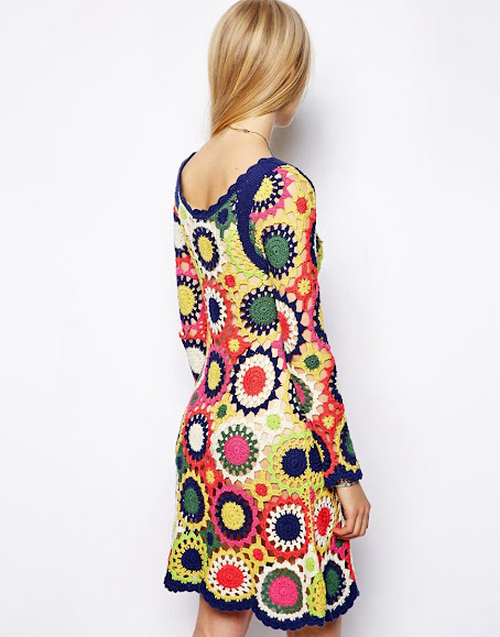 Очень красивое платье,хочется связать...будет время разберусь со схемой мотивов...хороший вариант пустить в ход остаточки пряжи