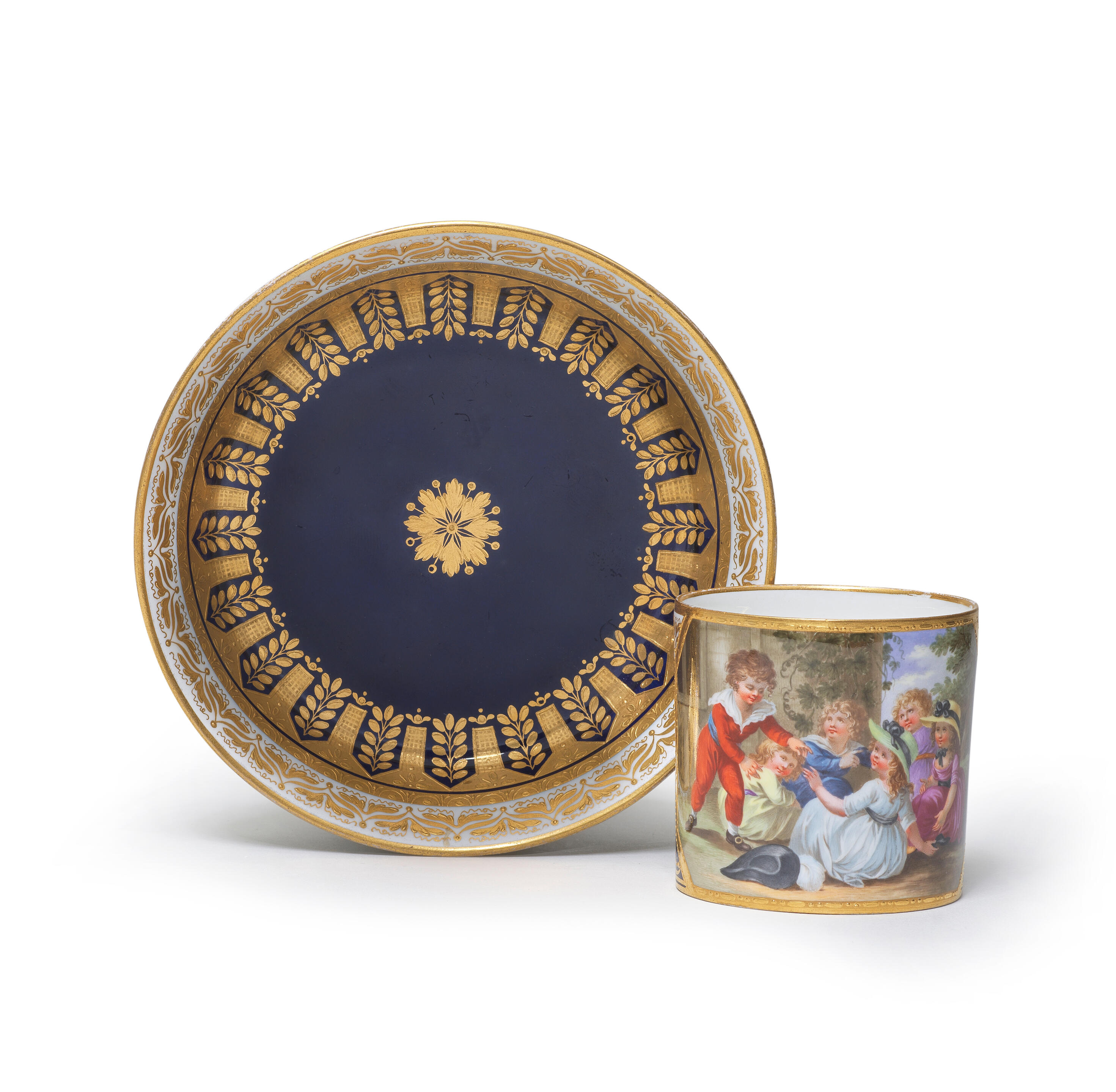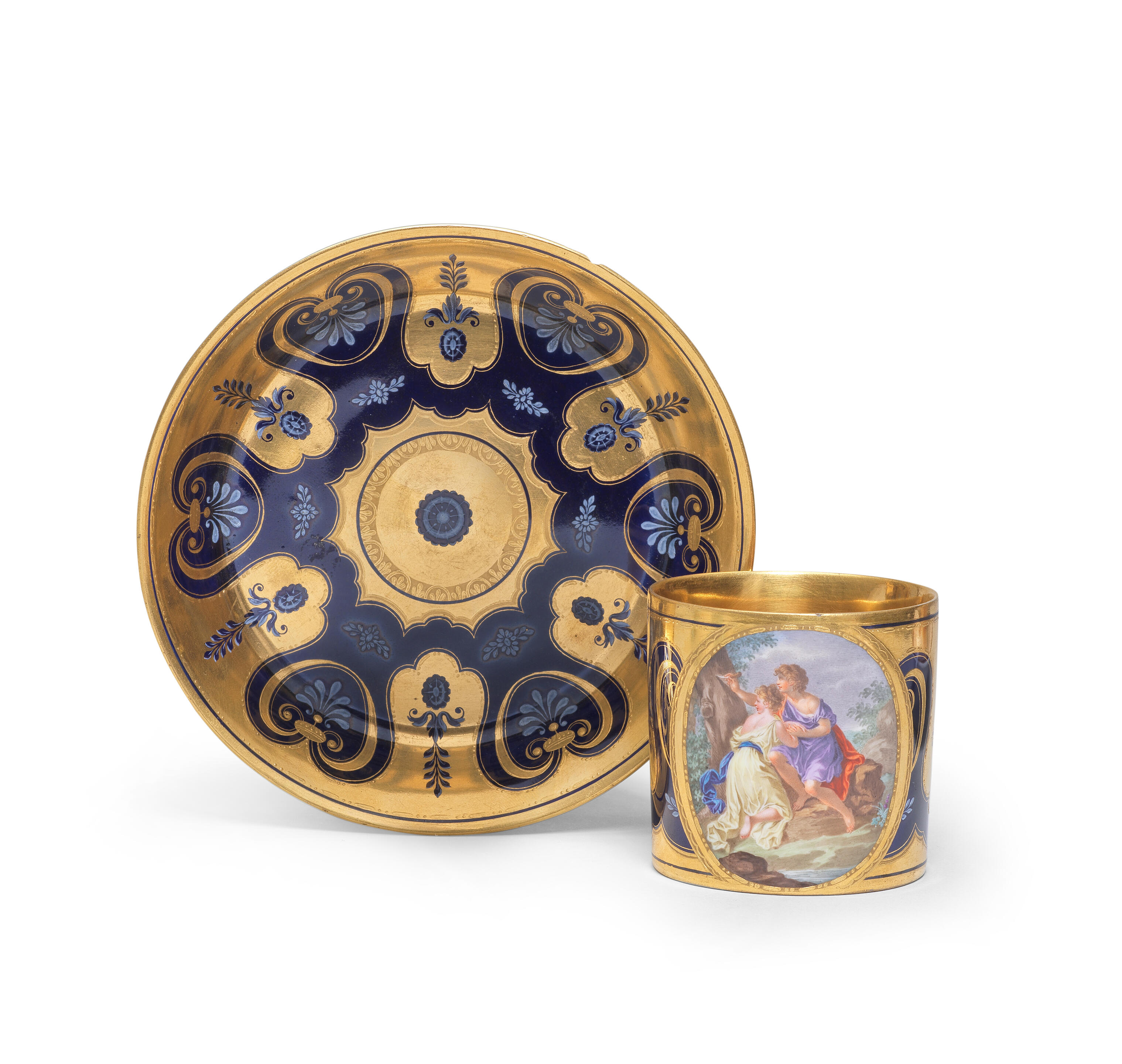 A Vienna, Sorgenthal period, blue-ground coffee can and saucer, circa 1801