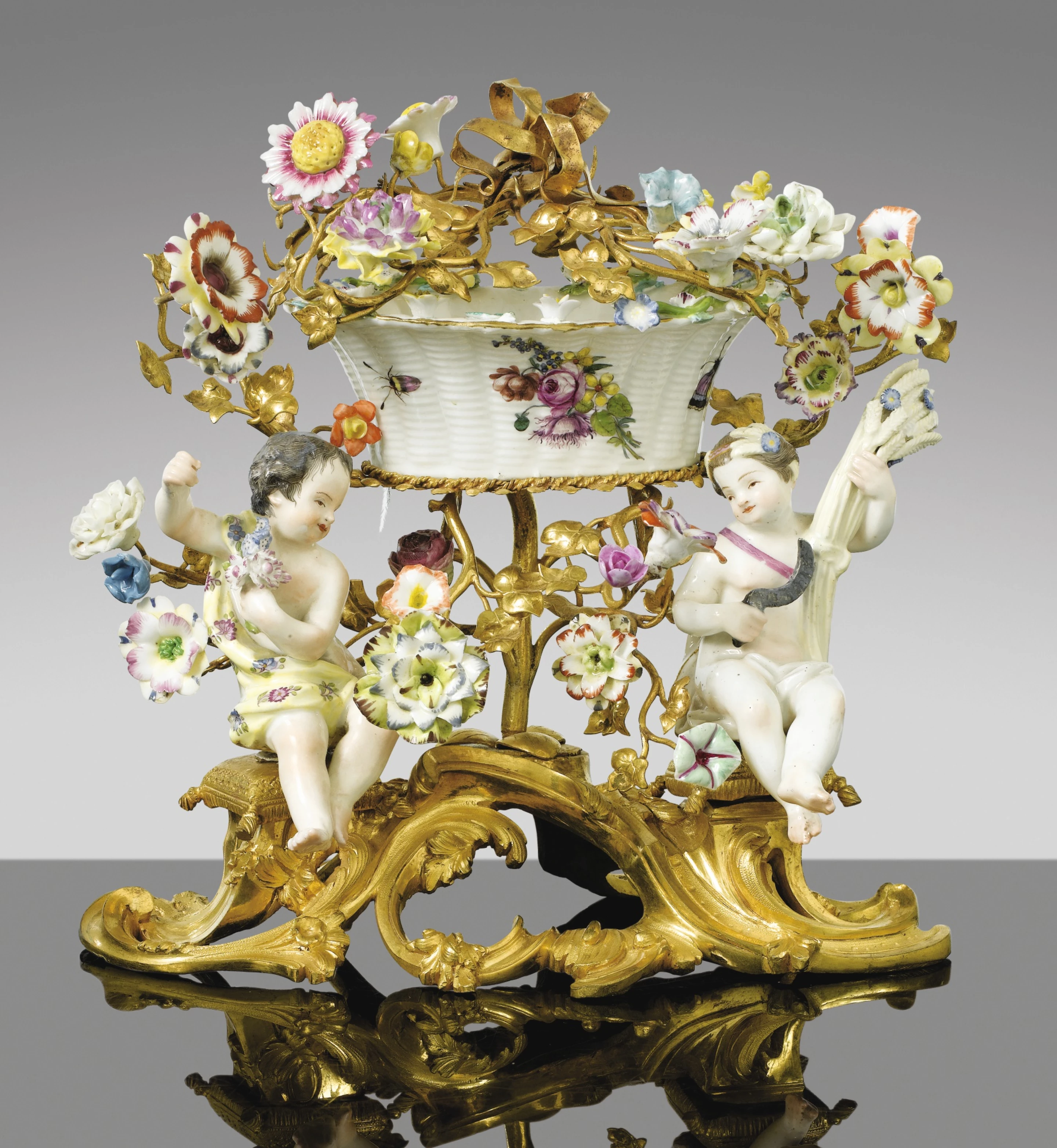 A GILT-BRONZE MOUNTED MEISSEN PORCELAIN GROUP, THE PORCELAIN CIRCA 1755, THE MOUNTS MID-18TH CENTURY, PROBABLY GERMAN