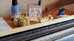 Все последующие петли будем не закрывать(не сокращать),а вязать.ЧВ.Для этого рычаги каретки переводим в положение для ЧВ вязания.Выдвигаем крайние 2 иглы в ПНП(переднее нерабочее положение).Провязываем ряд,делаем замах нитью под предпоследнюю иглу.
