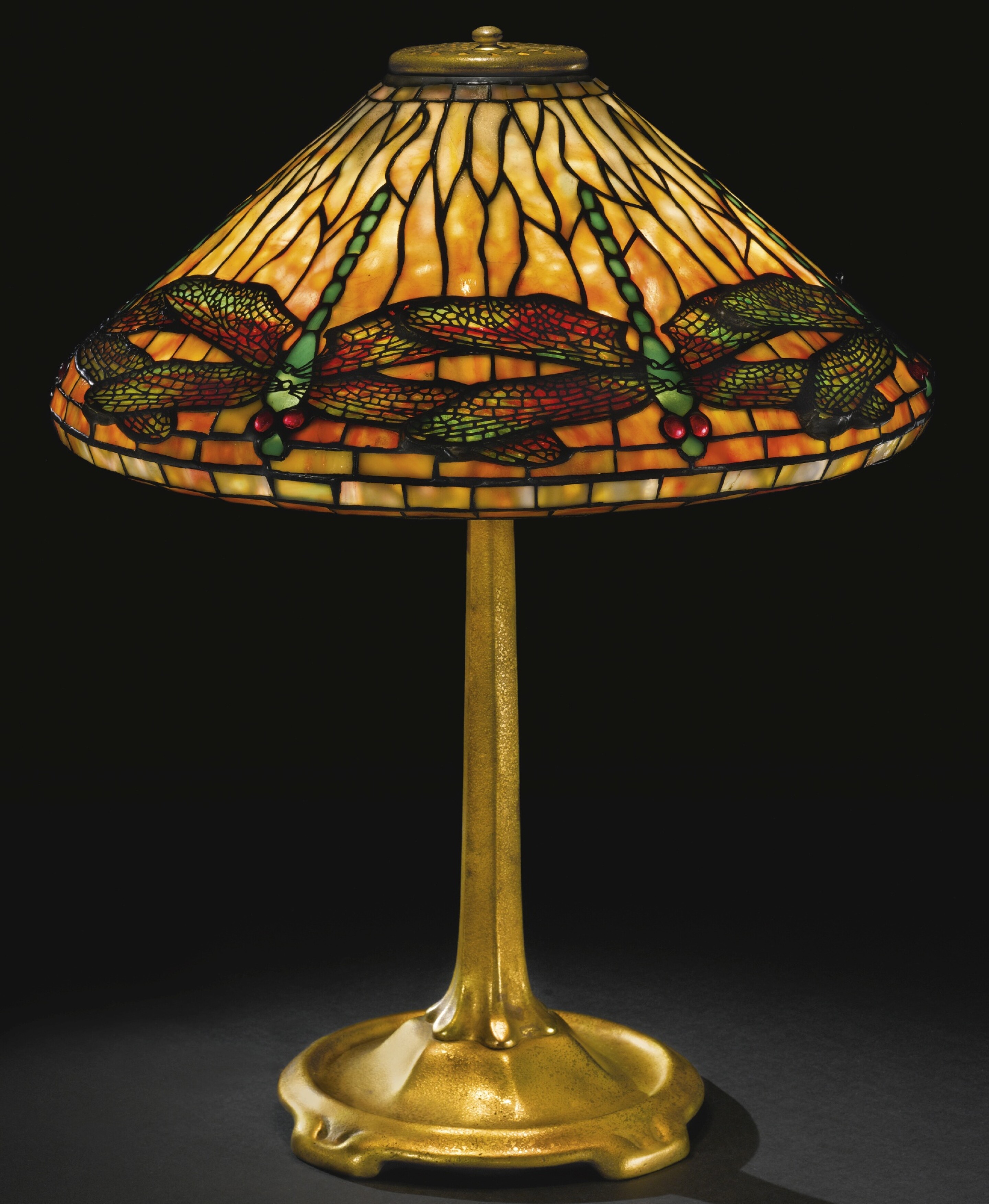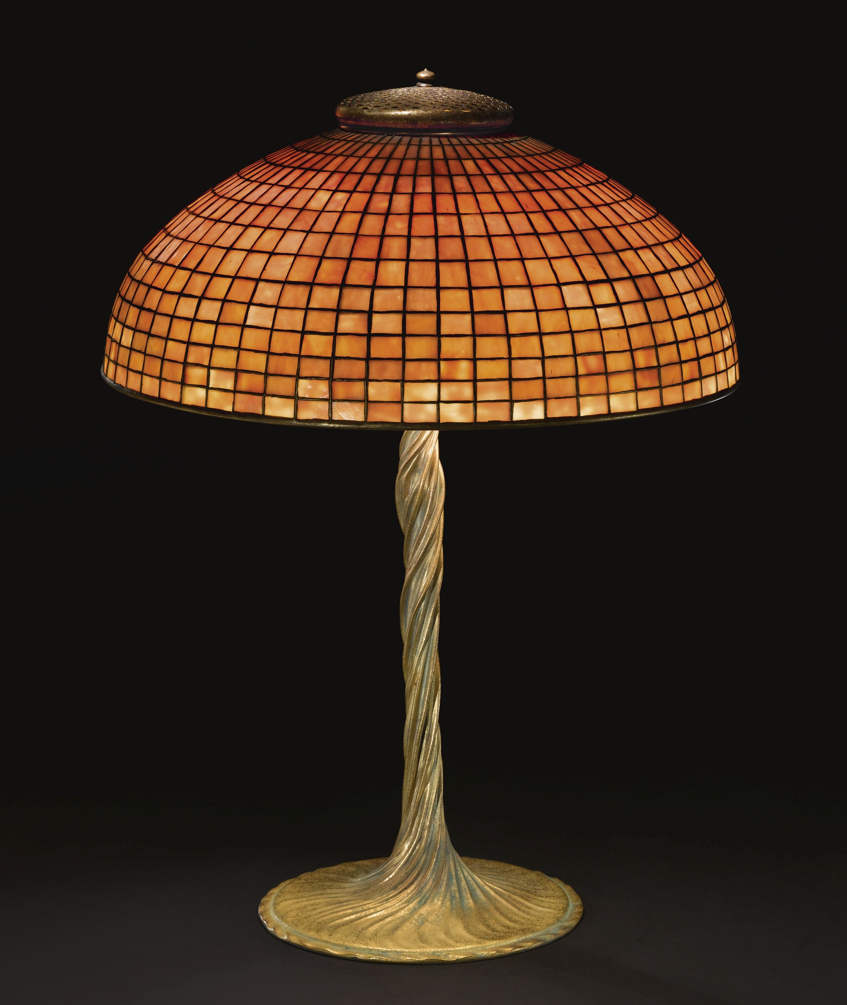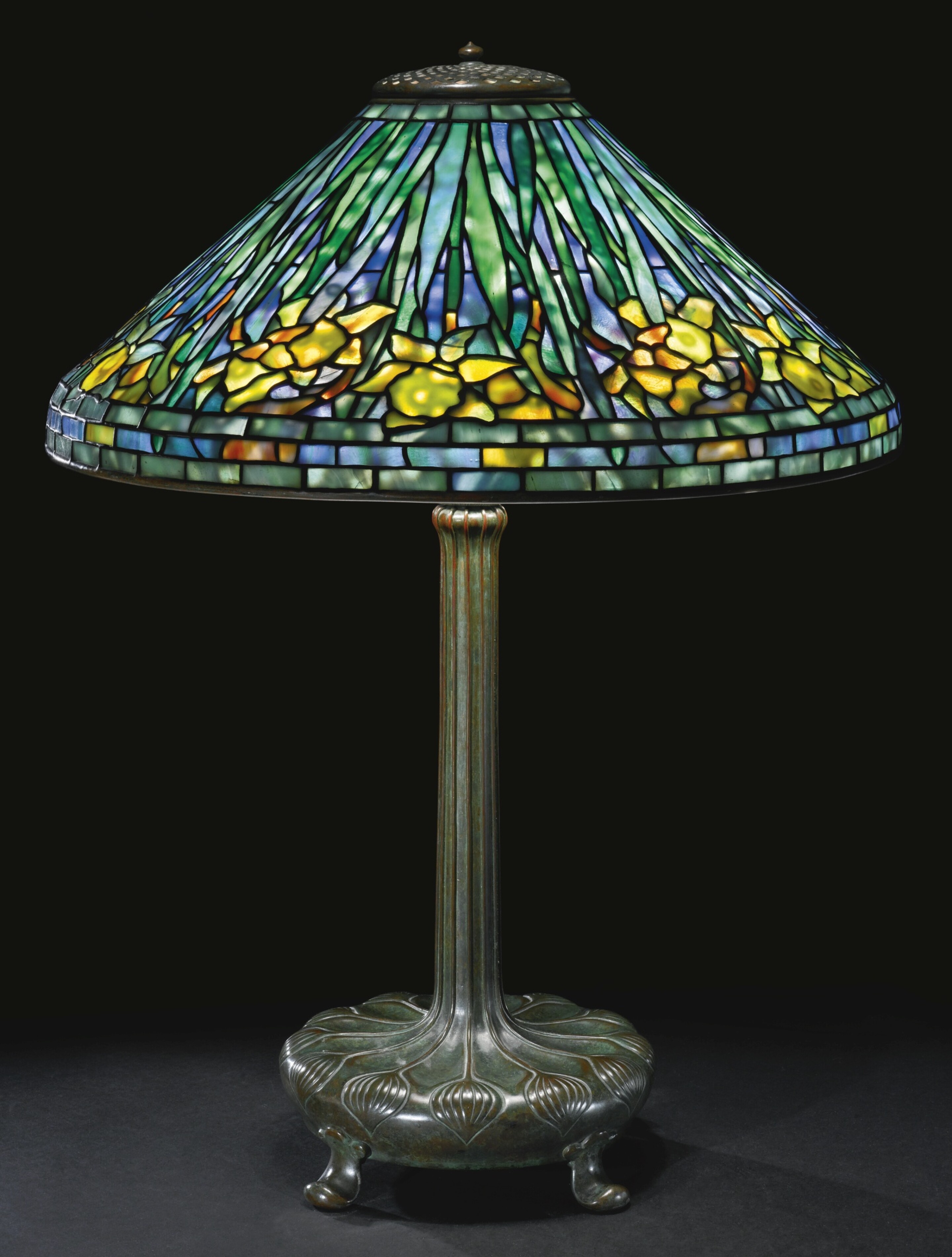 A 'DAFFODIL' LEADED GLASS AND BRONZE CHANDELIER,