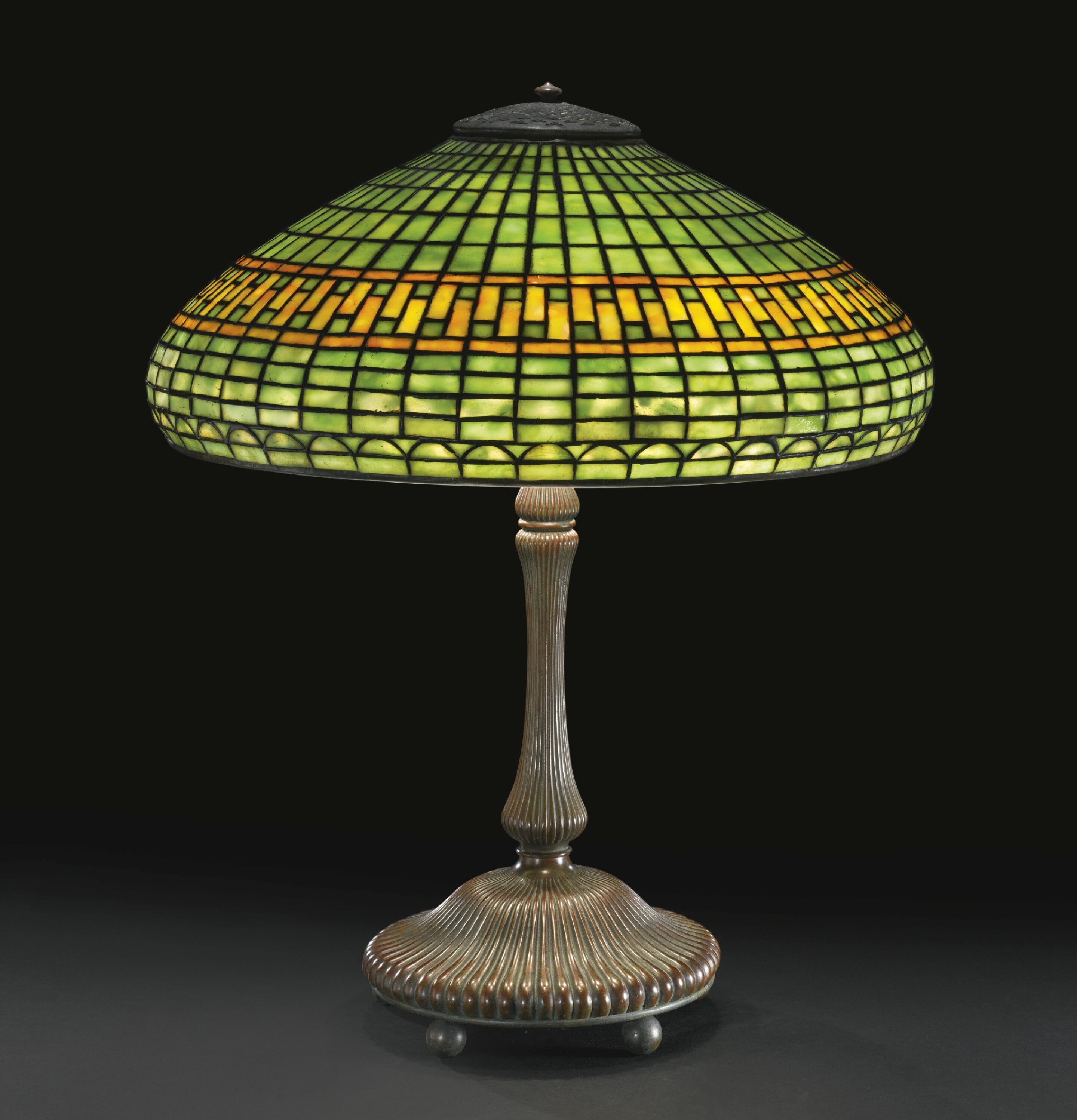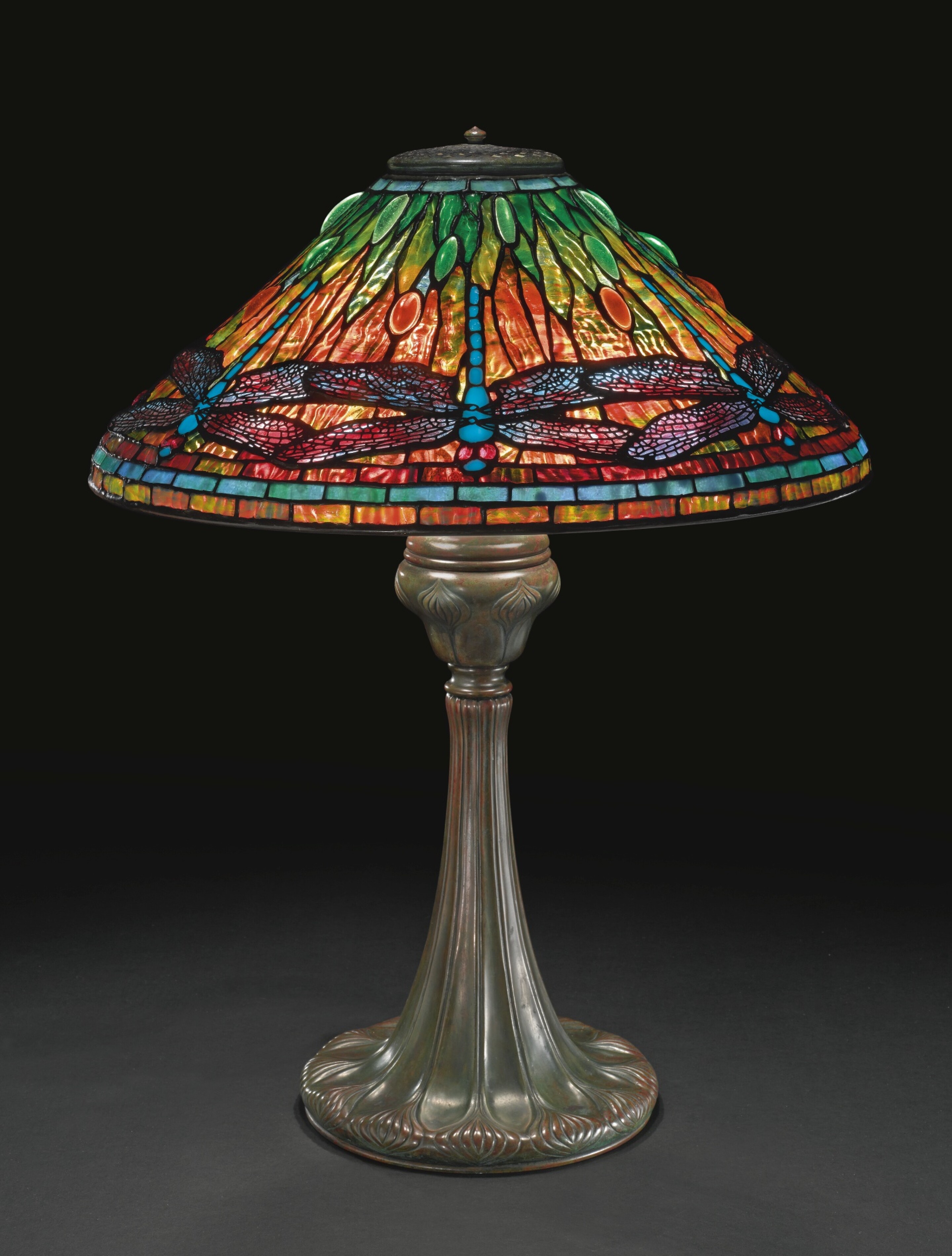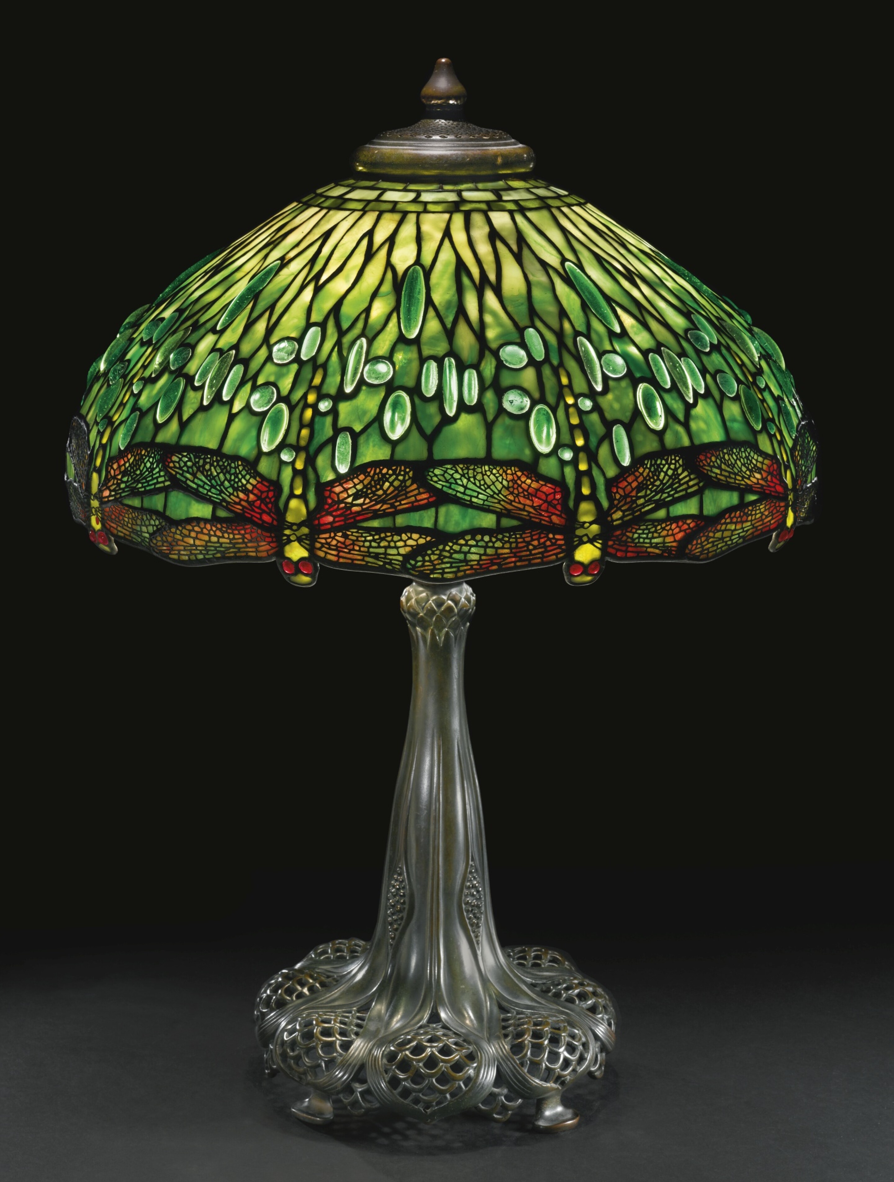 A 'DAFFODIL' LEADED GLASS AND BRONZE CHANDELIER,