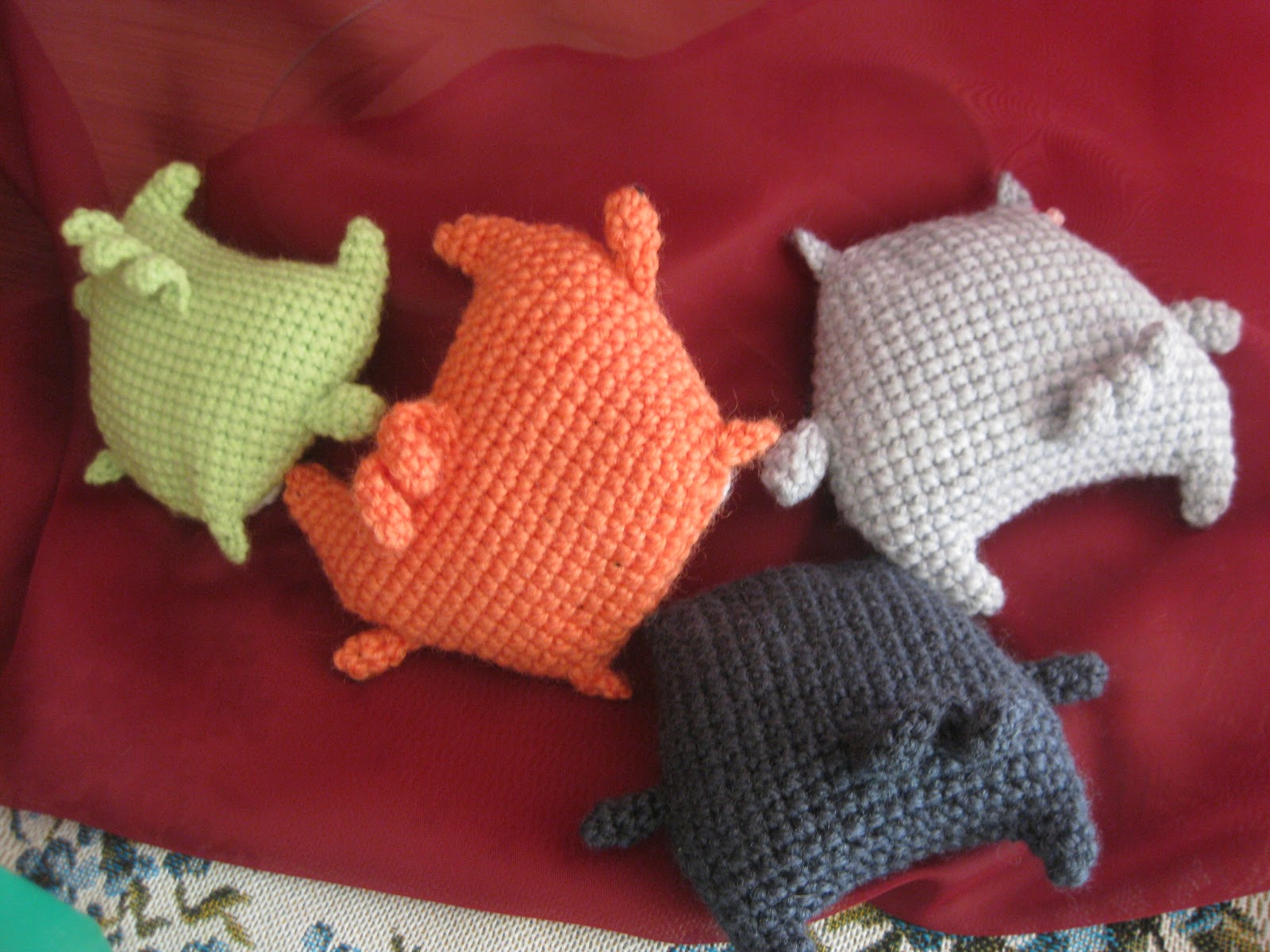 Для облегчения работы используйте маркер или контрастную нить. Новый ряд начинается перед петлей, в которую вставлен маркер. В процессе вязания необходимо следить за симметрией игрушки. При смещении маркера вправо необходимо связать дополнительный столбик и сместить маркер на одну петлю («петля смещения» в описании рядов не участвует).