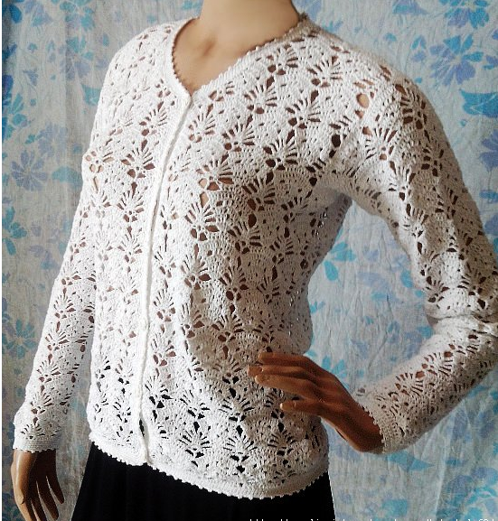 Планка правой полочки: по краю полочки на спицы набрать 66 п. и вязать резинкой 4 х 2, в 5-м р. выполнив 4 отверстия для пуговиц на одинаковом расстоянии друг от друга. На высоте 4 см от начала вязания п.