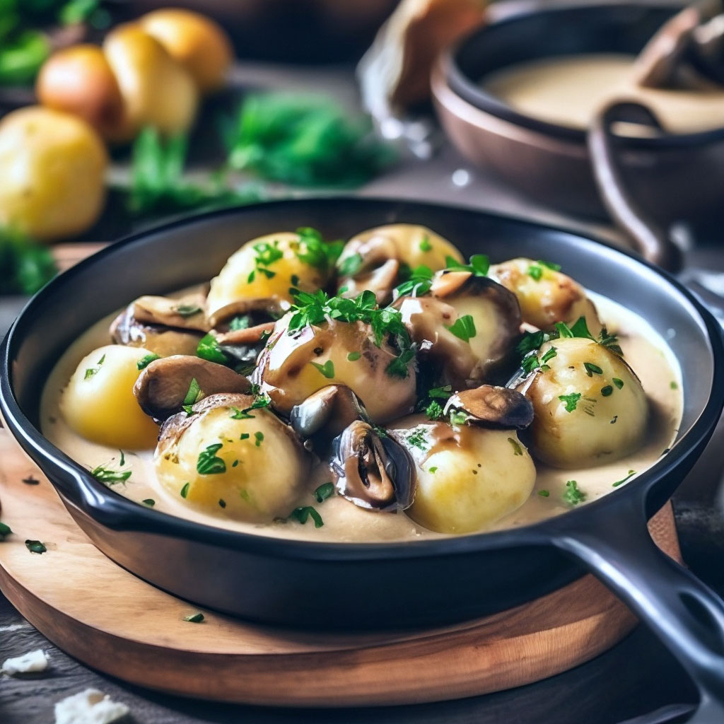 Картофельные клёцки с грибным соусом и свежей зеленью – это простое и вкусное блюдо, которое можно приготовить за 30 минут. Для приготовления клёцек понадобится картофель, мука, яйцо, соль и перец. Грибной соус готовится из шампиньонов, лука и сливок. Зелень (укроп и петрушка) добавляется для украшения и придания аромата.