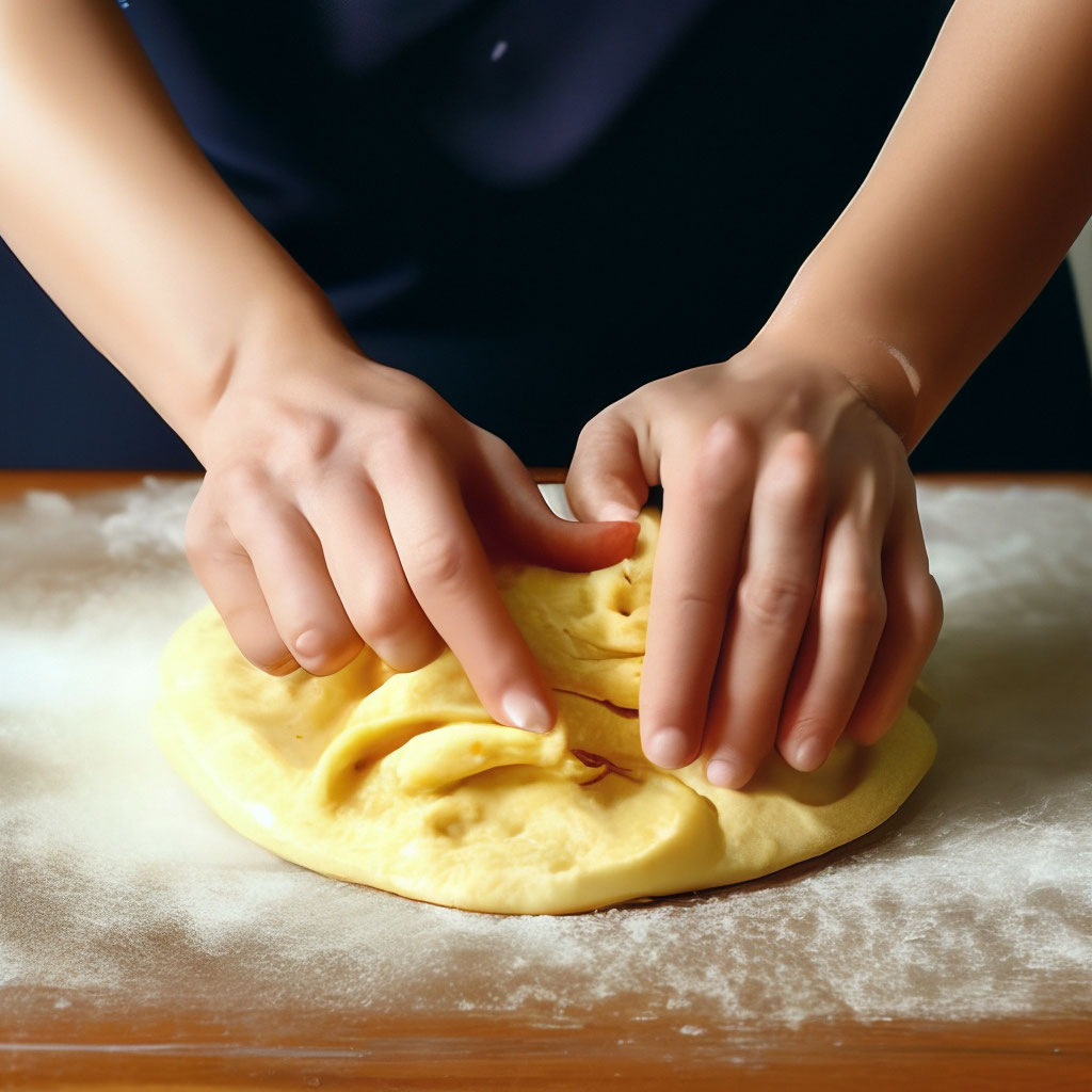 2. Раскатайте тесто на столе, посыпанном мукой, толщиной около 1 см.