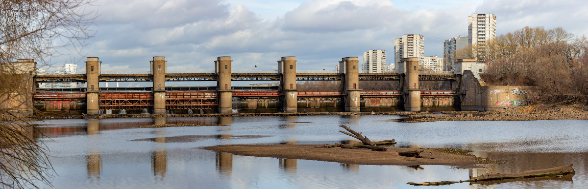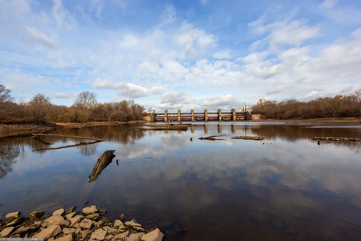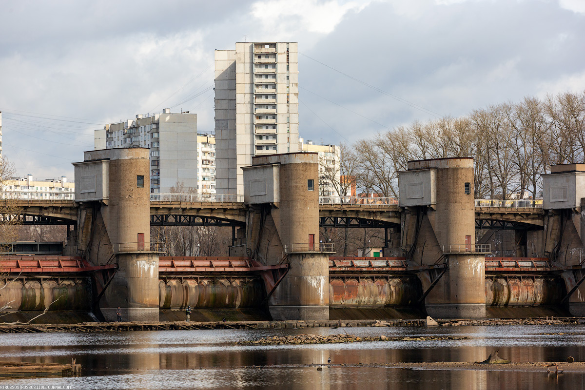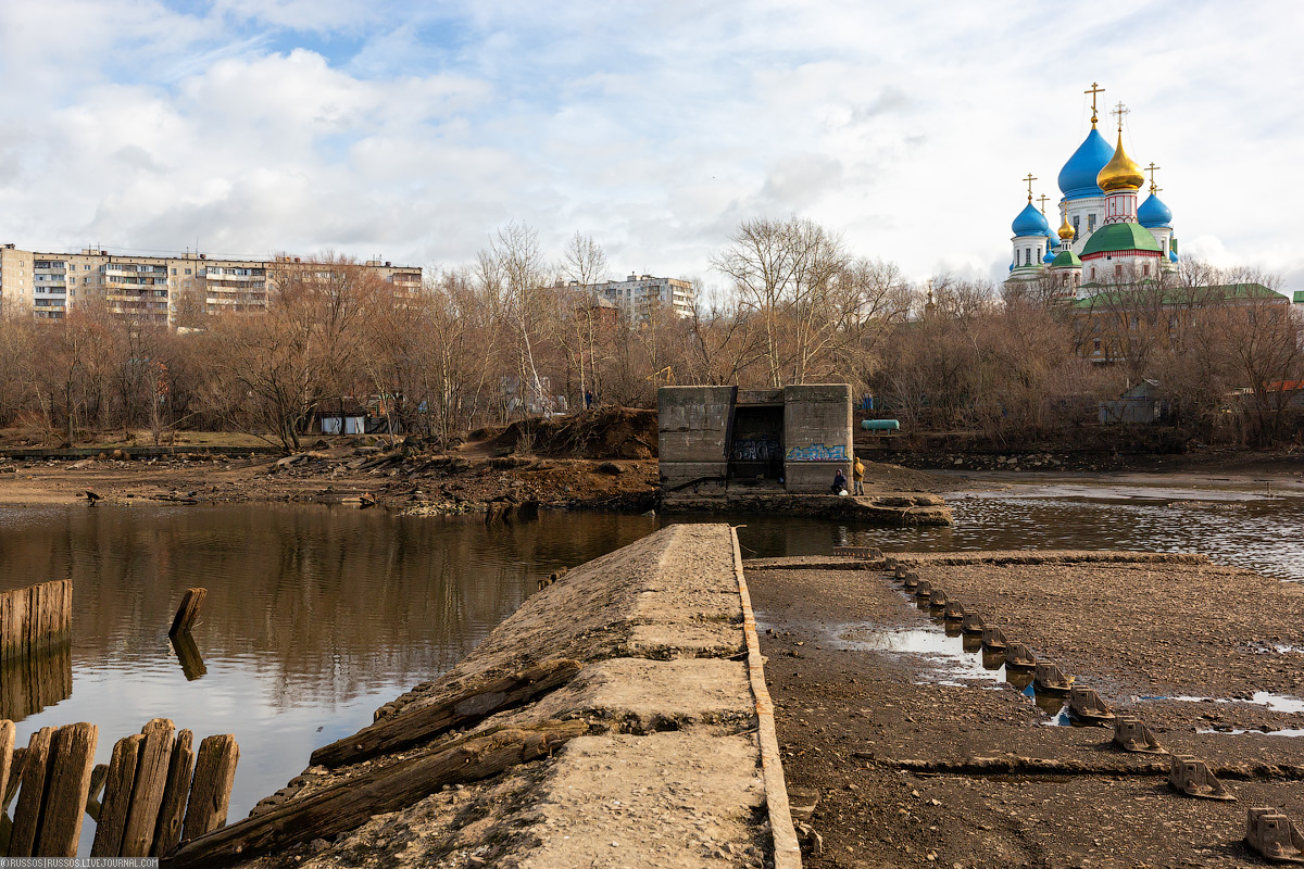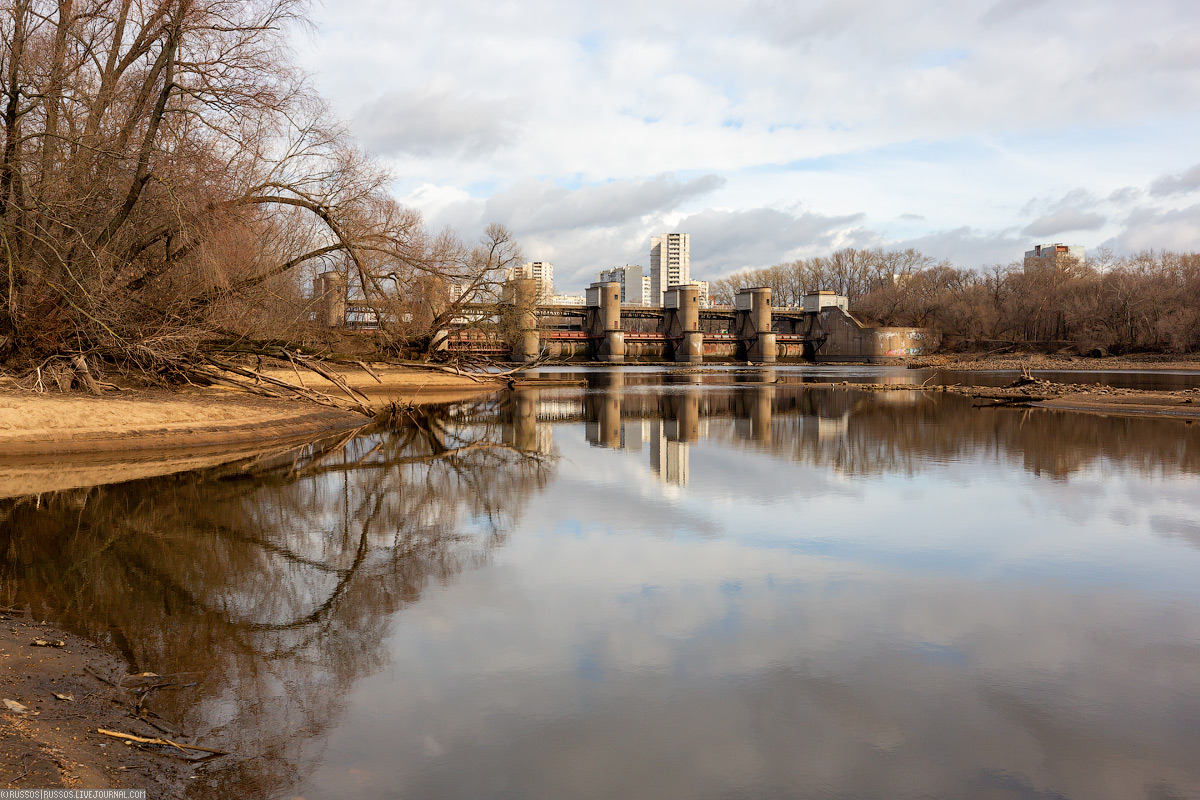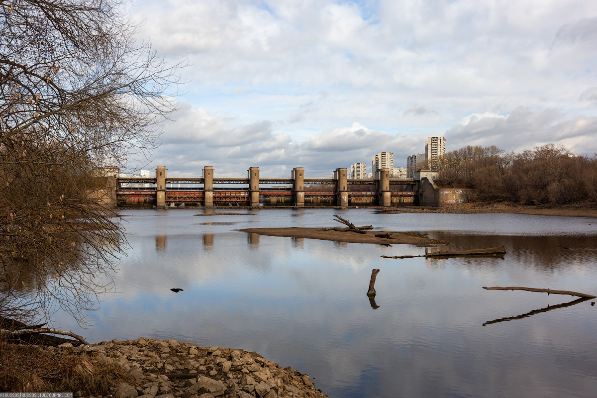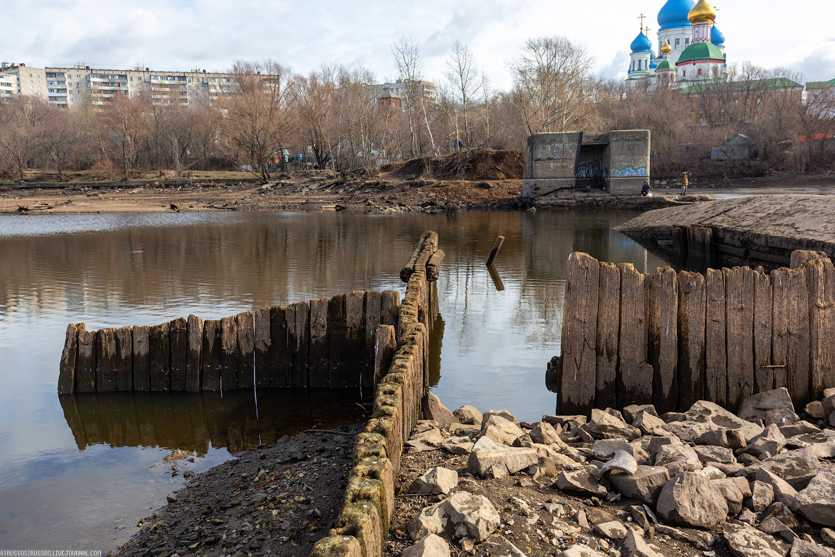 1. Спущенная Москва-река. Летом тут широкая гладь воды.