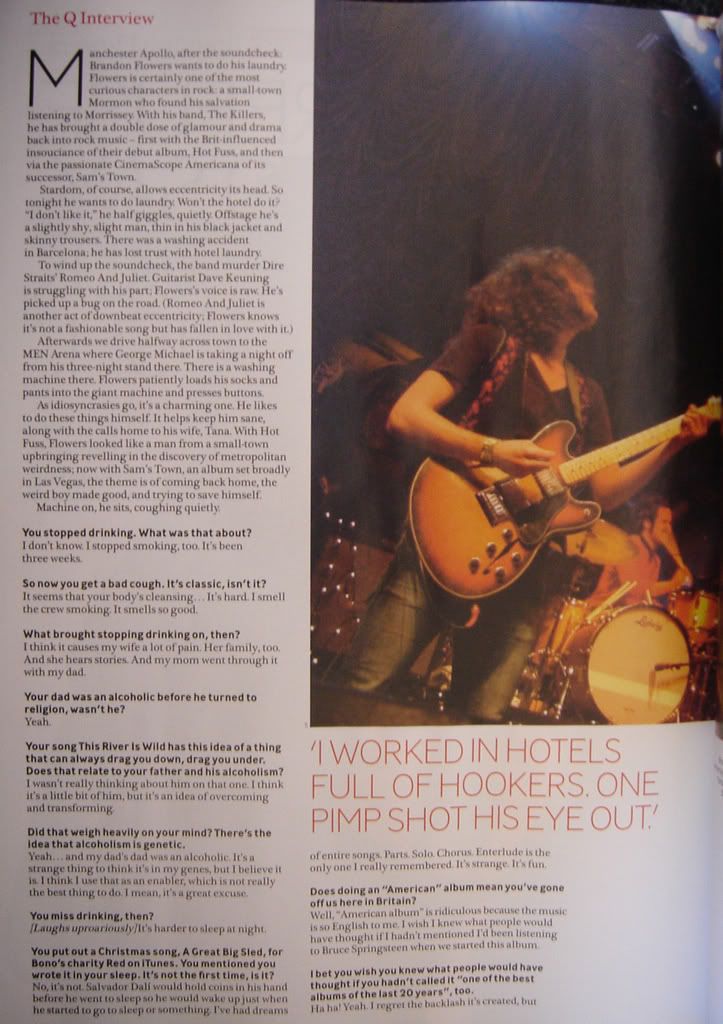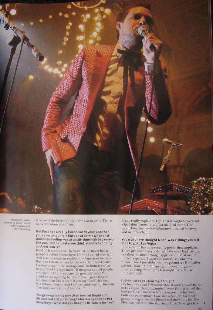 В колонках играет - The killers-BonesНастроение сейчас - ...ммммм...Почти год дебютная пластинка The Killers “Hot Fuss” находится на вершинах хит-парадов. В апреле Брендону Флауэрсу – моднику из Лас-Вегаса и мормону, курящему Malboro Lights и употребляющему тучу алкоголя – предстоит тридцатидневный тур по США, а уже в июне европейский тур вместе с U2.
